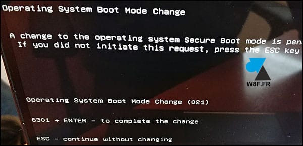 - Au redémarrage, la machine détecte la modification du Bios et affiche une invite pour saisir un code à quatre chiffres. Attention, inutile d’utiliser la touche Majuscule pour entrer les chiffres.