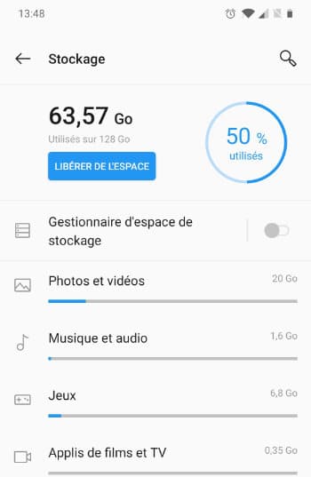 Android facilite désormais la gestion de la mémoire. Le menu « Stockage », apparu dès Android 8, permet d’avoir une vue claire et rapide de ce qui reste disponible. Terminé les mauvaises surprises à cause d’un espace saturé sans avertissement.